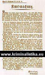 V listopadu 1815 byla po celých Čechách, na Moravě a v Dolních Rakousech vyvěšena a vybubnována vyhláška s vypsáním vysoké odměny 4000 zlatých za dopadení Jana Jiřího Grasela. Ve vyhlášce bylo uvedeno, že pokud by ke Graselovu dopadení přispěl jeho spolupachatel, měla mu připadnout polovina odměny a byla mu slíbena beztrestnost. Kdo by neoznámil jeho pobyt nebo mu pomáhal, měl být potrestán podle § 194 tr. zák. na 3 až 4 roky těžkého žaláře. Kdo oznámením jeho pobytu přispěje k zatčení, měl dostat odměnu 500 zlatých. Zatykač byl doplněn podrobným popisem osoby.